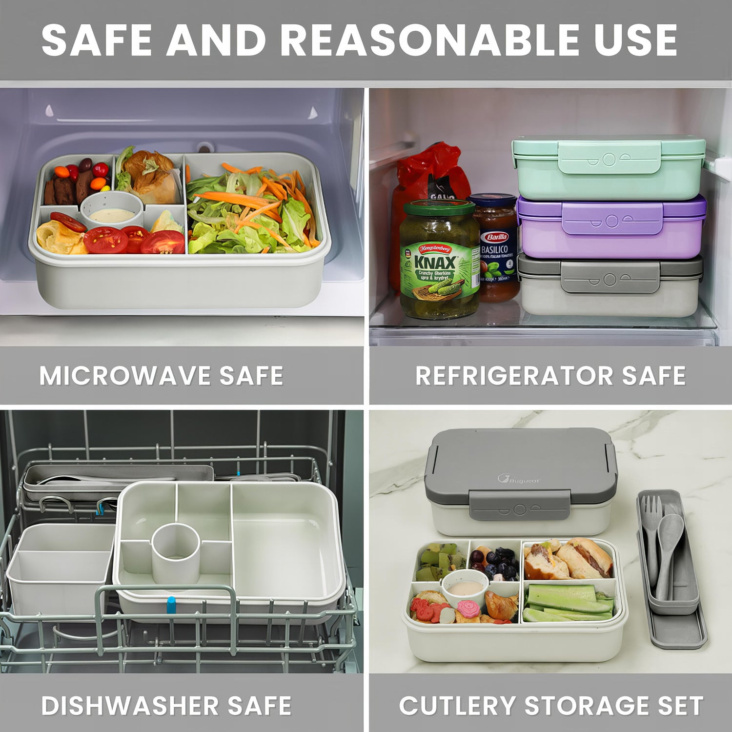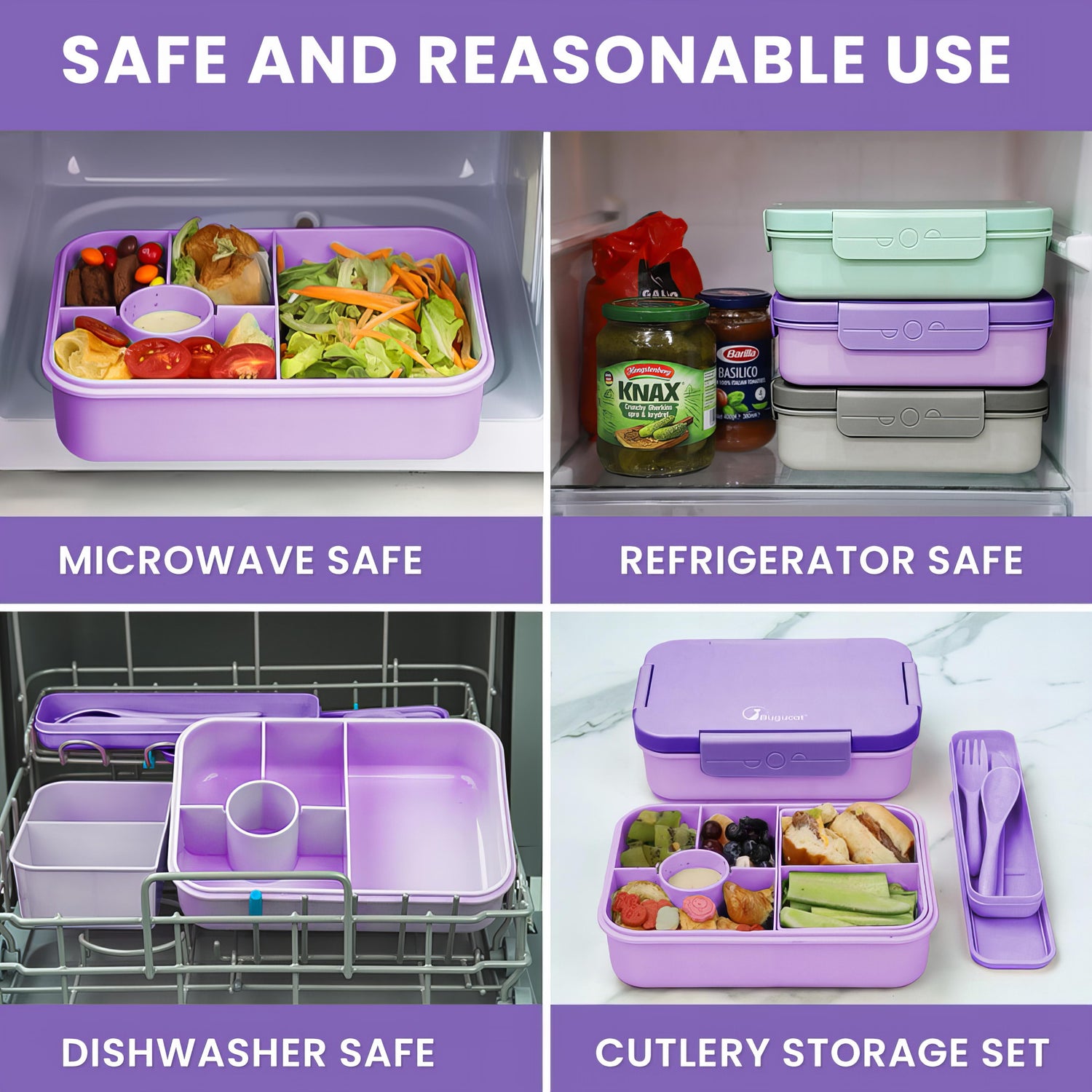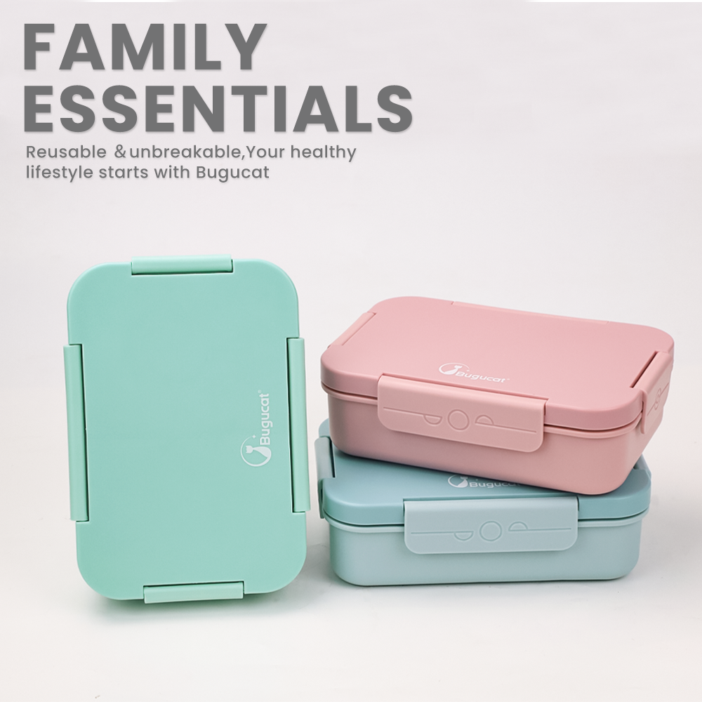 【HIGH QUALITY MATERIAL】The Bugucat Lunch Box is made of high-quality PP material, non-toxic, non-irritating odor, BPA-free and reusable. Microwave safe and dishwasher safe. The surface of the Lunch Box adopts a frosted process, which can enhance the anti-slip performance and reduce fingerprint residue. This is a safe, environmentally friendly and reusable lunch box.