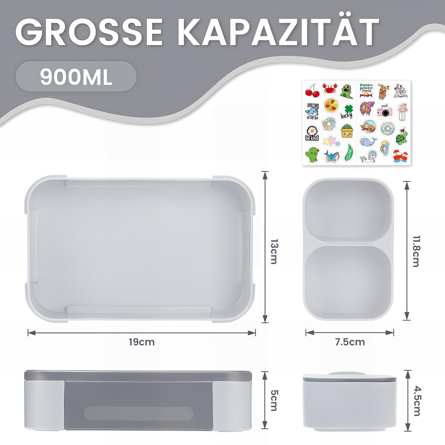 • Easy to carry: with a capacity of 900 ml, the lunch boxes offer enough space for main dishes, fruit, salad and sauces. Their compact design and light weight make them ideal for school, office, picnics and travel