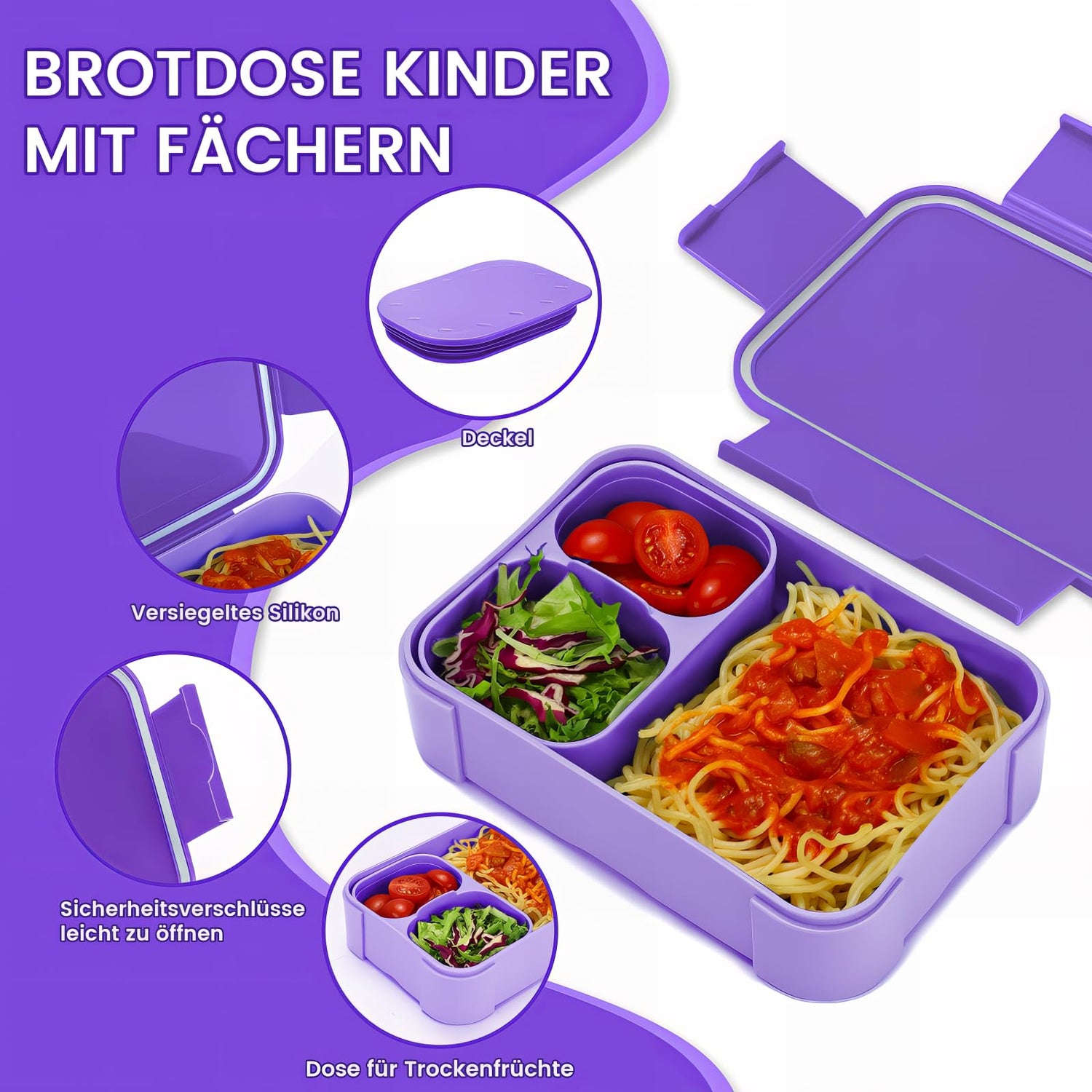 • Children's lunch box with compartments: the Bento box is equipped with an independent silicone seal that safely separates each portion. Thanks to the two safety buttons on the sides, children can easily open and close the lid