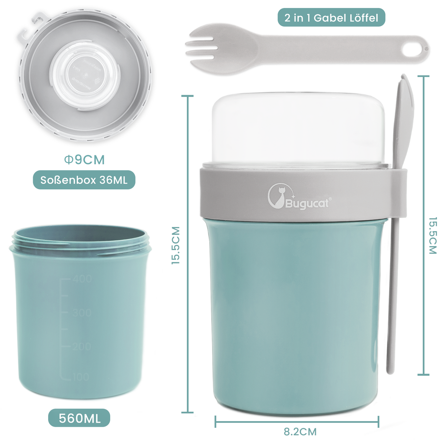 - Easy to carry: the yoghurt cup to go is small and lightweight, which makes it easy to transport and space-saving. The middle lid has a rubber ring that prevents leakage of liquids. You don't have to worry about the cup leaking on the go. It is perfect for school, work, sports, camping and travel.