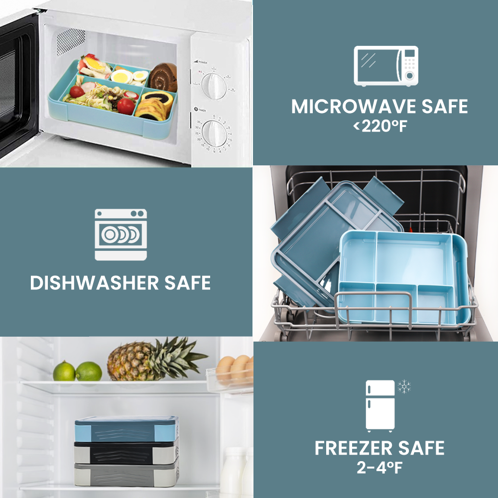 • 【HIGH QUALITY BENTOBOX】 The Bugucat Bentobox is made of high-quality food-grade environmental protection material (PP), BPA-free, sturdy and durable, and the Bento box will not be damaged if it falls from the table. The bottom tray reheats food safely in the microwave and is easy to clean in the dishwasher. Safe, functional and easy to clean, the Bento box is the perfect companion for a balanced diet.